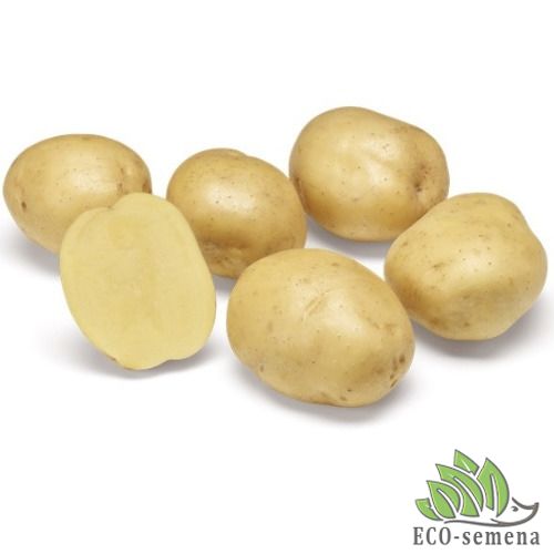 Формирует компактные кусты с крепкой ботвой. Картофель имеет округло-овальную форму, гладкую желтую кожицу и светло-желтую мякоть. Глазки неглубокие, что обеспечивает удобство в чистке и придает картофелю привлекательный товарный вид. Размер клубней достаточно велик и равномерен. Под одним кустарником формируется значительное количество выровненных клубней с высокой товарностью. Период покоя клубней достаточно длинный, что обеспечивает хорошую лежкость при хранении.