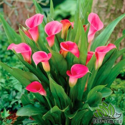 Калла Pink – один из лучших сортов садовой каллы для домашнего выращивания. Это удивительной красоты цветок розового цвета – подходит от как для выращивания каллы в домашних условиях в горшке так и для создания ландшафтных композиций в открытом грунте. Выращивание цветов каллы на даче не создаст проблем – растение неприхотливо, быстро размножается, идеально подходит для посадки в горшок. Растения каллы органично смотрятся возле домашнего водоема. Эти необычные цветы часто выращивают на срез – в букете каллы могут стоять до 2 недель.