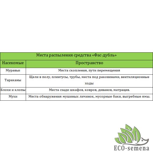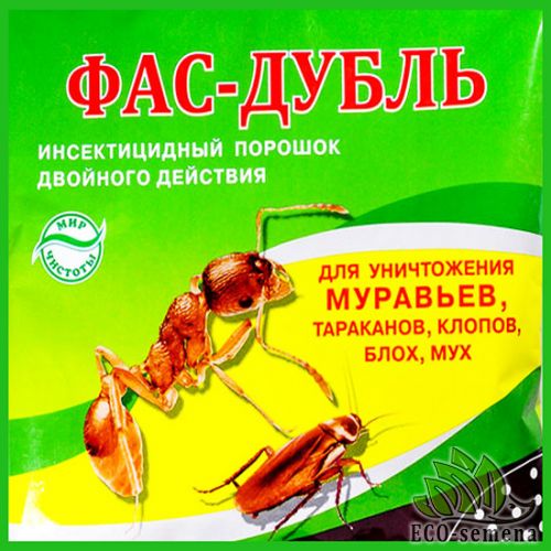 - Инсектицид Фас-дубль контролирует все виды тараканов и муравьев внутри помещений и на открытых территориях