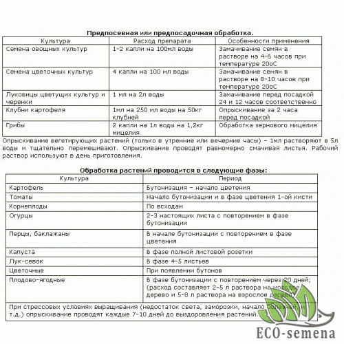 Луковицы цветочных культур и черенки: 1 мл на 2 л воды.